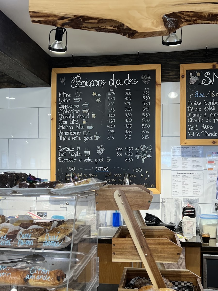 The menu at Mich Café is a delightful fusion of exquisite pastries and expertly brewed coffees. Indulge in the Pain à l'orange et au chocolat for just CA$2.50 or savor a rich Chocolatine aux amandes at CA$3.50. Coffee lovers will be pleased with options like the Macchiato or Espresso, both priced at CA$2.50, while those craving warmth can enjoy a satisfying Chai latte for CA$3.55.